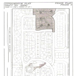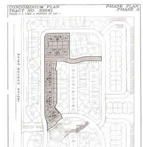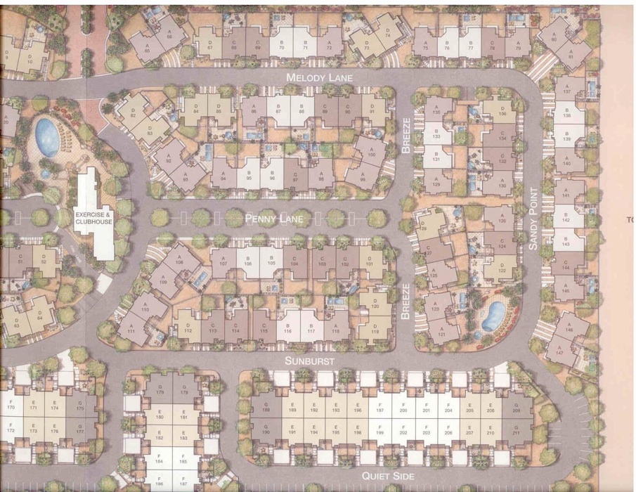 Map of the 117 condos in the completed portion of Palermo, with streets Breeze Loop, Enterprise Way, Foothill Ave., Melody Lane, Penny Lane, Quiet Side St., Sandy Point Trail and Sunburst Blvd.